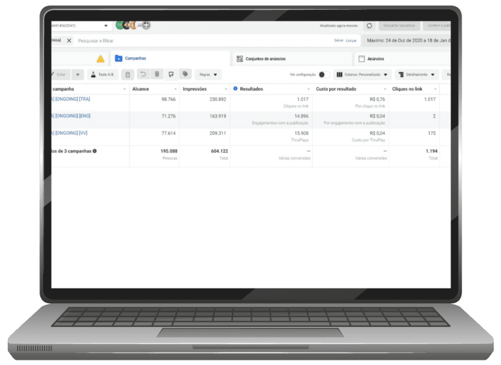 Alcançamos cerca de 47 mil pessoas e tivemos cerca de 3.468 compras marcadas nas campanhas com ticket médio de R$58,00. Fora as vendas indiretas que não conseguimos mensurar.